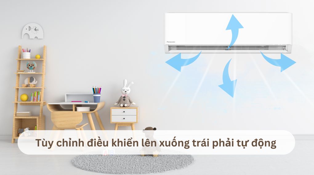 – Máy lạnh được trang bị cơ chế gió điều khiển lên xuống trái phải tự động, giúp phân bổ luồng khí đồng đều, mang lại cảm giác mát lạnh dễ chịu. Cánh đảo gió 4 chiều được thiết kế để hạn chế luồng khí thổi trực tiếp vào người, giúp giảm nguy cơ mắc các bệnh về hô hấp như ho, sổ mũi, phù hợp với gia đình có trẻ nhỏ và người cao tuổi.